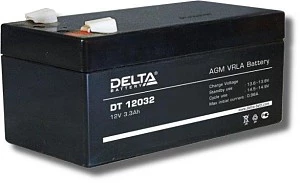 Описание: Delta DT 12032 - Свинцово-кислотный, герметичный аккумулятор, 12В/3.2Ач, ножевые клеммы 4.8 мм (F1), 135х67х61мм, 1,26кг