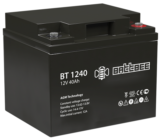 Battbee BT 1240 - Стационарный аккумулятор Battbee BT 1240 (напряжение 12 В, ёмкость 40 Ач) разработан специально для охранно-пожарных систем, он может использоваться в буферном и циклическом режимах. Срок службы батареи при соблюдении правил эксплуатации составляет 3 года.