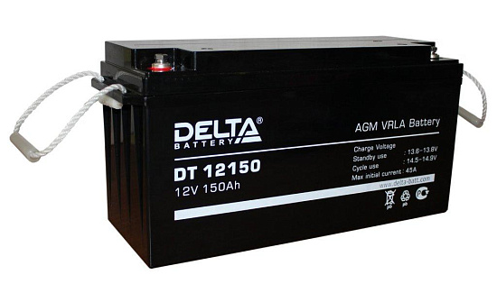 Герметизированный VRLA cвинцово-кислотный аккумулятор Delta DT 12150 напряжением 12В и емкостью 150Ач изготовлен по технологии AGM (с микропористым заполнителем, пропитанным электролитом). Корпус изготовлен из негорючего ABS пластика. Срок службы аккумулятора рассчитан на 7-10 лет работы. Аккумулятор предназначен для работы в режиме постоянного подзаряда (т.н. буферный режим), обладает низким внутренним сопротивлением и саморазрядом. Дополнительно к аккумулятору у нас можно подобрать зарядное устройство для него, батарейный шкаф или стеллаж.