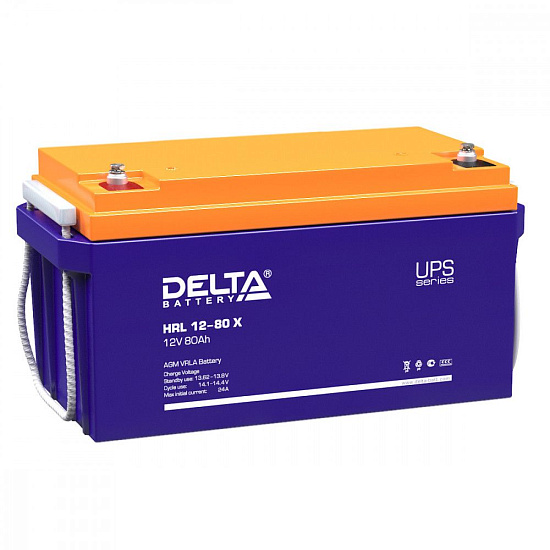 Delta HRL 12-80 X – это обновленный в 2018 году выпускавшийся с 2003 года аккумулятор Delta HRL 12-80 из серии аккумуляторов Delta HRL (UPS Series). Аккумулятор сменил цвет с оранжевого на синий и в маркировке получил дополнительный индекс «X». Герметизированный VRLA cвинцово-кислотный аккумулятор Delta HRL 12-80 X напряжением 12В и емкостью 80Ач изготовлен по технологии AGM (с микропористым заполнителем, пропитанным электролитом). Корпус изготовлен из негорючего ABS пластика. Срок службы аккумулятора достигает 12 лет. Аккумулятор относится к линейке DELTA UPS series и предназначен для работы в системах бесперебойного питания (ИБП), системах связи, ЦОД.