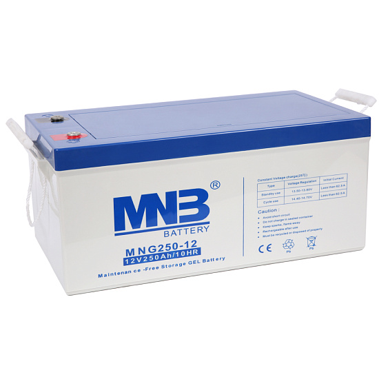 MNB MNG 250-12 - Свинцово-кислотный, герметичный аккумулятор, 12В/250Ач; тип клемм; болт М8; 521х269х220 мм; 70 кг