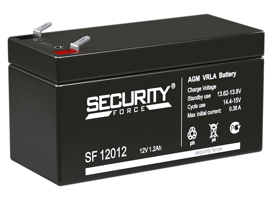 Security Force SF 12012 — необслуживаемый свинцово-кислотный аккумулятор напряжением 12В и емкостью 1.2Ач. Торговый бренд Security Force объединяет модели АКБ, оптимизированные для энергообеспечения охранных и пожарных сигнализаций. SF 12012 купить также можно для обеспечения резервного и автономного питания осветительных и измерительных приборов, кассовых аппаратов, систем видеонаблюдения и контроля.
