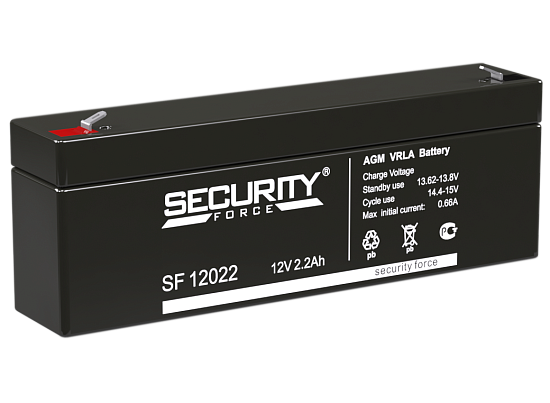 Security Force SF 12022 — необслуживаемый свинцово-кислотный аккумулятор напряжением 12В и емкостью 2.2Ач. Торговый бренд Security Force объединяет модели АКБ, оптимизированные для энергообеспечения охранных и пожарных сигнализаций. SF 12022 купить также можно для обеспечения резервного и автономного питания осветительных и измерительных приборов, кассовых аппаратов, систем видеонаблюдения и контроля.