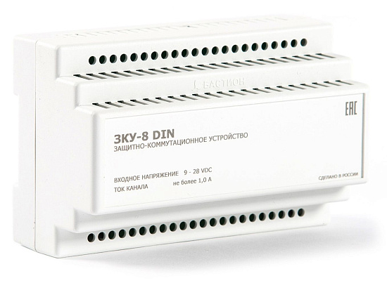 Бастион ЗКУ-8 DIN - Защитно-коммутационное устройство для коммутации и защиты от КЗ линии питания 9-28 В, 8 каналов по 1 А; быстроразъемные клеммы для удобства монтажа; самовосстанавливающиеся...