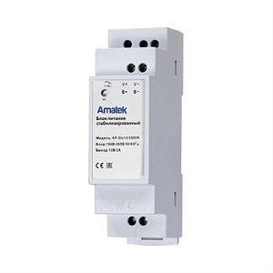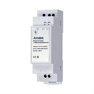 Описание: Amatek AP-D12/20DIN - 12В/2А, стабилизированный. Регулировка выходного напряжения 12-14В, 2А, 24Вт. Вход ~190-265В, 50Гц. Защита от перегрузки (2,4А), перенапряжения (16В) и короткого замыкания с автоматическим восстановлением. Встроенный предохранитель. Корпус 27×92×56мм с возможностью монтажа на DIN-рейку, -20°С до +50°С, 20-90% RH