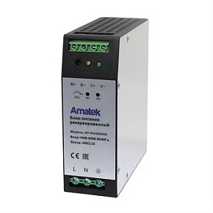 Описание: Amatek AP-DIN48/60 - 48В/1,25А, стабилизированный. БП обеспечивает питание нагрузки напряжением 48В. Регулировка выходного напряжения 48-56В, 1,25А, 60Вт. Вход ~180-245В, 50Гц. Защита от перегрузки и короткого замыкания с автоматическим восстановлением. Выходное сигнальное реле 30В/1А, замкнуто при наличии выходного напряжения. Корпус 100×90×40мм с возможностью монтажа на DIN-рейку (DIN-рейка 90мм в комплекте), -20°С до +50°С, 10-90% RH
