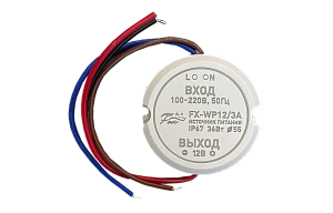 Описание: FX-WP12/3A: Уличный влагозащитный блок питания IP67. Подходит для подрозетника Ø55 . Входное напряжение 90-250V, Выходное 12V, Номинальный ток 2.8A, Максимальный 3А, Мощность до 36Вт, Рабочая температура -30 +40С, Габаритные размеры Ø55*23, Вес 0,32кг. Комплектация: Блок питания, паспорт, WAGO разъем, коннектор 12В.