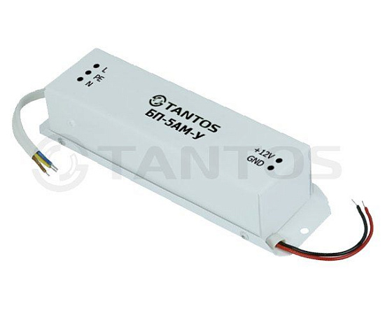 Tantos БП-5АМ-У - Источник вторичного электропитания импульсный 12В, 5А Электронная защита от короткого замыкания и перегрузки по току. Корус - герметичный (уличный) металлический, IP67, -35 +35°С, 52×42×194...