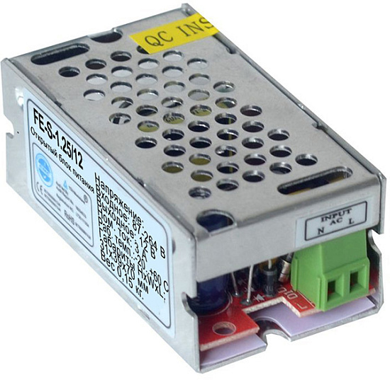 Falcon Eye FE-S-1,25/12 - Открытый Блок питания. Входное напряжение: 87-264В. Выходное: 12В. Номинальный ток: 1,25A. Рабочая температура: от -20 до +60°С. Габариты: 31х39х70 мм. Вес 0,15 кг.