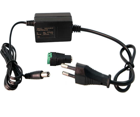 FX-PS DT-12W-12/1 12В,1А. Габариты 64х35х27 мм. Цвет корпуса черный. Разъем: mini jack 3.5 mm, длина шнура питания 1 м. Сетевой шнур интегрированный, длинна 1 м. Защита от КЗ, перегрузки, от повышенного напряжения. Диапазон рабочих температур -20°C-50°C