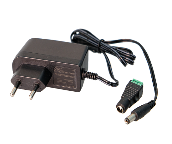 FX-PS WM-12W-12/1 12В, 1А. Цвет корпуса черный.Разъем: mini jack 3.5 mm, длина шнура питания 1 м Защита от КЗ, перегрузки, от повышенного напряжения. Диапазон рабочих температур -20°C-50°C