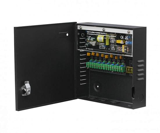 Smartec ST-PS105DML-BK - Б.п. 12 VDC/ 5 A, 8 каналов, металлический корпус 205х200х50 мм, черный