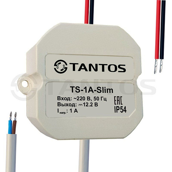 Tantos TS-1A-Slim - Источник вторичного электропитания 12В, 1А. в корпусе IP54 для скрытой установки в короба, распределительные коробки. 48×56×28 мм.