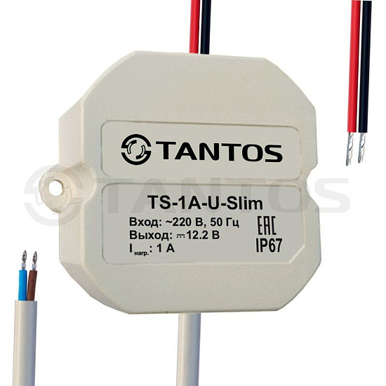 Tantos TS-1A-U-Slim - Источник вторичного электропитания 12В, 1А. в корпусе IP67 (всепогодный) для скрытой установки в короба, распределительные коробки, 48×56×28 мм.