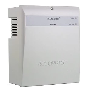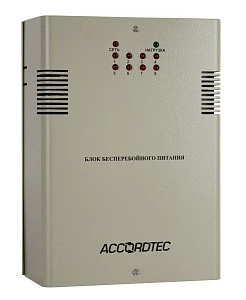 Описание: AccordTec ББП-60 v.8 исп. 1 - Блок бесперебойного питания в пластиковом корпусе под АКБ 7 Ач со встроенной платой распределения нагрузки по 8-ми каналам с защитой каждого канала от перегрузки по току и КЗ. Ток нагрузки 4 х 0.75А. Uвх. AC 165-264 V, Uвых. DC 13.6 ± 0.2V, Габаритные размеры: 168×195×83 мм. Масса брутто 620 г. Цвет корпуса - белый