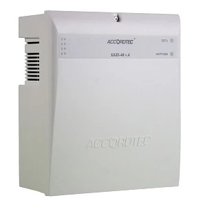 Описание: AccordTec ББП-40 v.4 исп. 1 - Блок бесперебойного питания в пластиковом корпусе под АКБ 7 Ач со встроенной платой распределения нагрузки по 4-ем каналам с защитой каждого канала от перегрузки по току и КЗ. Ток нагрузки 4 х 1.0А. Uвх. AC 165-264 V, Uвых. DC 13.6 ± 0.2V, Габаритные размеры: 168×195×83 мм. Масса брутто 590 г. Цвет корпуса - белый