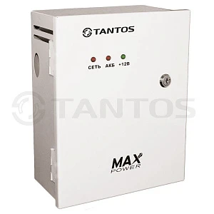 Описание: Tantos ББП-80 MAX - Источник вторичного питания резервированный 12В, 8А. (max 8.3A) под АКБ 12В 1×17А∙ч или 2×12А∙ч или 2×7А∙ч. Защита от глубокого разряда аккумулятора. Защита от переполюсовки при подключении аккумулятора. Защита от КЗ. Корус - металл с замком, 292×219×100мм.