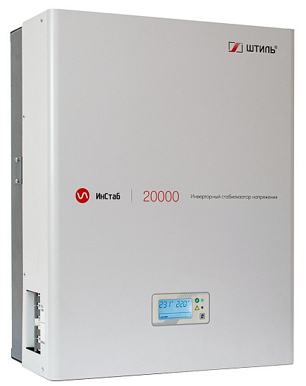 Штиль ИнСтаб IS20000 (220-230В) - Стабилизатор переменного напряжения инверторный (с двойным преобразованием) однофазный, чистая синусоида; P-нагр.20 кВА/18кВт, U-вх.90…310В, U-вых.220…230 (с шагом 1В), I-вых.92 А; IP20, t-раб.+5…+40°C, 379х481х191 мм