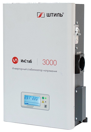 Штиль ИнСтаб IS3000 (220-230В) - Стабилизатор переменного напряжения инверторный (с двойным преобразованием) однофазный, чистая синусоида; P-нагр.3 кВА/2,5 кВт, U-вх.165…310 В, U-вых.220…230 В (с шагом 1 В), I-вых.14 A; IP20, t-раб. +5…+40°C, 205х370х103 мм