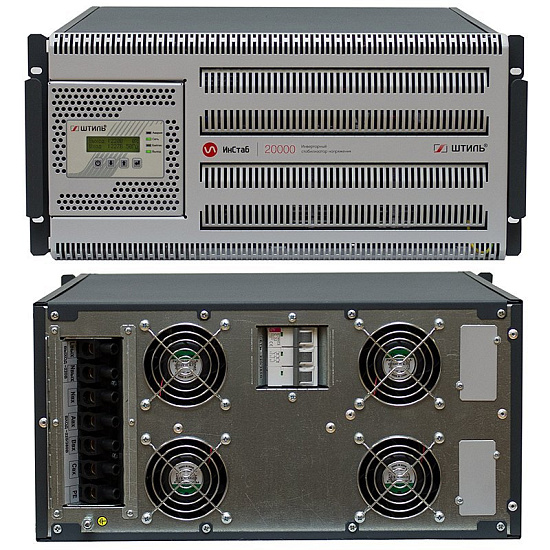 Штиль ИнСтаб IS3120RT - Стабилизатор переменного напряжения напольный/в стойку инверторный (с двойным преобразованием) однофазный, чистая синусоида; P-нагр.20000 ВА/16000 Вт, U-вх.90…310 В, U-вых.220 В, I-вых.91 A; ЖК-дисплей со светодиодными индикаторами и кнопкой управления; IP20, t-раб.+5…+40°C, 515х220х560 мм