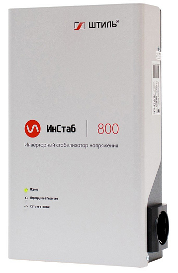 Штиль ИнСтаб IS800 (220В) - Стабилизатор переменного напряжения инверторный (с двойным преобразованием) однофазный, чистая синусоида; P-нагр.0.8 кВА/0.6 кВт, U-вх.90…310В, I-вых.3.6 А; IP20, t-раб.+5…+40°C, 187х300х78мм