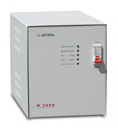 Штиль R 3000 - Стабилизатор переменного напряжения серии «Стандарт»; однофазный, релейный; P-нагр.3 кВА, U-вх.175…260 В, U-вых.180…242 В; защита от перегрузки и КЗ; IP20, t-раб.+1…+40°C, 185х220х380 мм, 14.7 кг