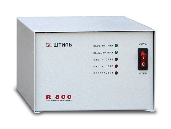 Штиль R 800 - Стабилизатор переменного напряжения серии «Стандарт»; однофазный, релейный; P-нагр.800 ВА, U-вх.165…265 В, U-вых.208…232 В; защита от перегрузки и КЗ; IP30, t-раб.+1…+40°C, 178х126х215 мм, 4 кг