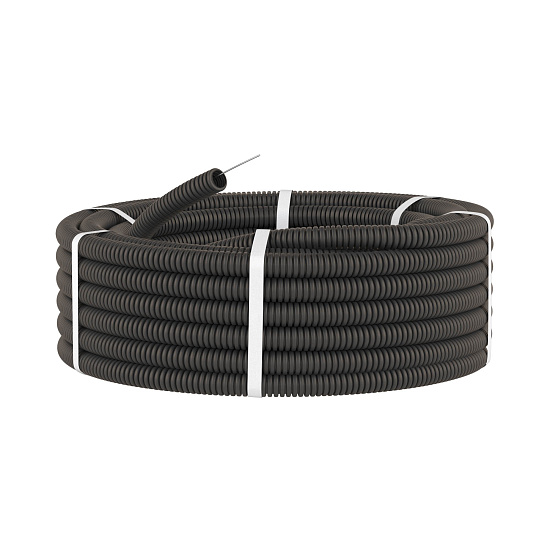 71725 (ДКС) - Труба ПНД гибкая гофр. д.25мм, лёгкая с протяжкой, 50м, цвет чёрный