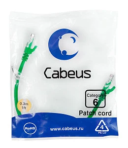 Описание: Cabeus PC-UTP-RJ45-Cat.6-0.3m-GN (8682c) - Патч-корд U/UTP, категория 6 2xRJ45/8p8c, неэкранированный, зеленый, PVC, 0.3м