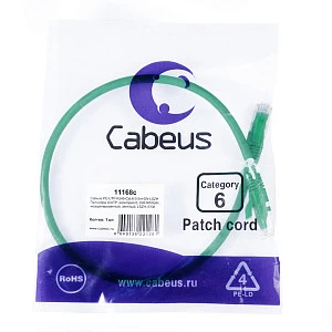 Описание: Cabeus PC-UTP-RJ45-Cat.6-1m-BK-LSZH (11195c) - Патч-корд U/UTP, категория 6 2xRJ45/8p8c, неэкранированный, черный, LSZH, 1м