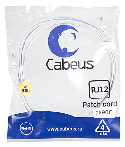 Описание: Cabeus PC-TEL-RJ12-3m (7890c) - Патч-корд телефонный 2х6р4с, белый, PVC, 3 м