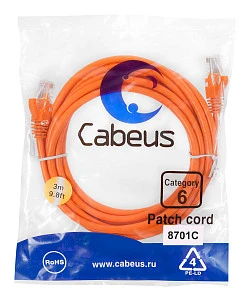 Описание: Cabeus PC-UTP-RJ45-Cat.6-3m-OR (8701c) - Патч-корд U/UTP, категория 6 2xRJ45/8p8c, неэкранированный, оранжевый, PVC, 3м