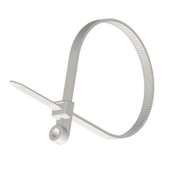 Amatek AK-NCTS-W4.0*150 - Хомут-стяжка кабельная нейлоновая 150x4.0 мм с монтажным отверстием. белая. неразъемная. -25°C ~ +80°C (упак. 100 шт.)