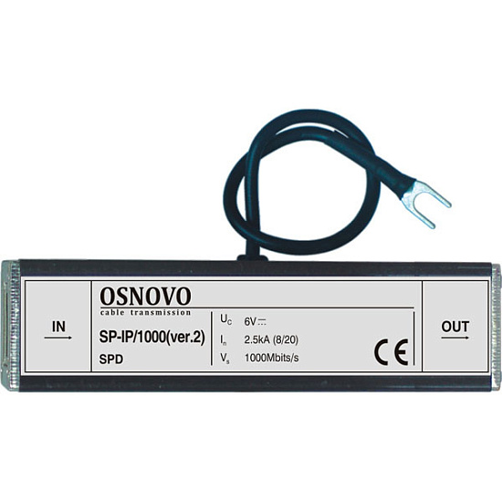 SP-IP/1000(ver.2) Устройство грозозащиты для локальной вычислительной сети (скорость до 1000 Мб/с), 1 вход (RJ45-мама), 1 выход (RJ45-мама). Максимальное рабочее напряжение 6V. Номинальный ток пробоя...