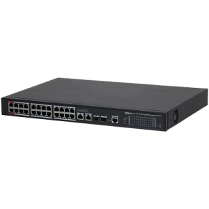 Описание: Dahua DH-S4228-24GT-360 - 24-портовый гигабитный управляемый коммутатор с PoE, уровень L2 Порты: 24 RJ45 10/100/1000Мбит/с (PoE/PoE+/Hi-PoE), 2 RJ45 10/100/1000Мбит/с (uplink), 2 SFP 1000Мбит/с (uplink); мощность PoE: порты 1~2 до 90Вт, порты 3~24 до 30Вт, суммарно до 360Вт; PoE watchdog; питание: 100~240В(AC); грозозащита: до 6кВ