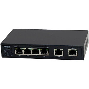 Описание: Amatek AN-S6P4-65 - Коммутатор на 6 портов (4 PoE+ порта + 2 порта Uplink): 4 порта 10/100Mbps RJ45, Auto-MDIX, PoE/PoE+ до 15.4/30 Вт каждый; + 2 порта 10/100Mbps RJ45 (Uplink). Поддержка IEEE 802.3af/at Power over Ethernet. Суммарная мощность PoE/PoE+ до 65Вт. Индикация: Link/Activity, Скорость, PoE, 220В. Таблица MAC адресов 2К, матрица 1,2 Гбит/с. Режим CCTV позволяет передавать данные на расстояние до 250 метров на скорости до 10 Мбит/с. Поддержка деления на 4 VLAN. Температура 0…+ 45°С. Встроенный блок питания AC ~220В. Размеры 190x130x35 мм.