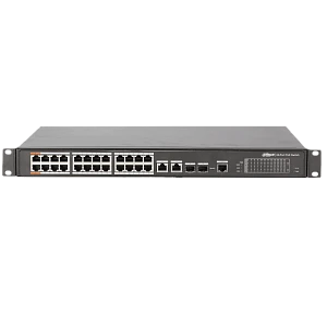 Описание: Dahua DH-PFS4226-24ET-360 - 24 портовый РоЕ коммутатор, управляемый, уровня L2; 2 комбо-порта x 10/100/1000 Base-T; 2 комбо-порта х 1000 Base-X; 24 порта x10/100 Base-T - POE; Порты 1 и 2 поддерживают Hi-PoE (60W), PoE+, PoE; IEEE802.3af/IEEE802.3at/Hi-PoE; Бюджет PoE: 360 Вт; Размеры: 440мм×300мм×44мм