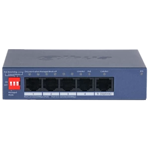 Описание: Dahua DH-CS4005-4ET1GT-36 - 4-портовый PoE коммутатор с функцией облачного управления Порты: 4 RJ45 10/100Мбит/с (PoE/PoE+), 1 RJ45 10/100/1000Мбит/с (uplink); мощность PoE: порт порты 1~4 до 30Вт, суммарно до 40Вт; питание: 53В(DC);