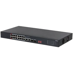 Описание: Dahua DH-S3220-16GT-240 - 16-портовый неуправляемый гигабитный коммутатор с PoE, уровень L2 Порты: 16 RJ45 10/100/1000Мбит/с (PoE/PoE+/Hi-PoE), 2 RJ45 10/100/1000Мбит/с (uplink), 2 SFP 1000Мбит/с (uplink); мощность PoE: порты 1~2 до 90Вт, порты 3~16 до 30Вт, суммарно до 240Вт; PoE watchdog; передача на 250м; питание: 100~240В(AC)