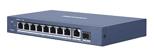 Описание: Hikvision DS-3E0510P-E/M - 8 RJ45 1000M PoE с грозозащитой 6кВ, 1 Uplink порт 1000М Ethernet,1 1000М SFPuplink порт; бюджет PoE 58Вт;таблица MAC адресов на 4000 записей; пропускная способность 20Гб/с; стандарты PoE: IEEE802.3af, IEEE802.3at; 48 VDC, 1.35 A; -10 °C...+55°C.,