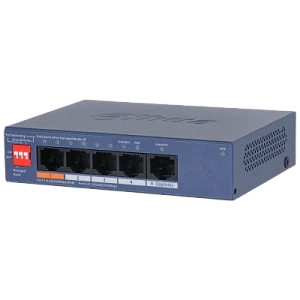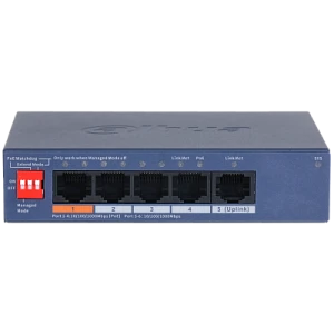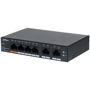 Описание: Dahua DH-PFS3005-4ET-36 - 4-портовый неуправляемый коммутатор с РоЕ Порты: 4 RJ45 10/100Мбит/с (PoE/PoE+/Hi-PoE), 1 RJ45 10/100Мбит/с (uplink); мощность PoE: суммарно до 36Вт; передача до 250м; питание: 48~57В(DC)