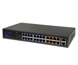 Описание: KENO KN-SW2402POE+ - 26 портов 10/100/1000 Мбит/с (IEEE802.3u 100BaseTX) из них 24 c поддержкой PoE (IEEE802.3at) 10/100 до 25Вт на порт (HI POE) + два порта UPLINK 10/100/1000 Мбит/с, Суммарная мощность потребителей 250 Вт, таблица МАС адресов - 16К, пропускная способность 14,8Гбит\с, Буфер обмена 4Мб, Режим 1: 1-24 порт 10/100 Base-T (PoE) до 100 метров, 16-24 порт 10 Base-T (PoE) до 250 метров, Габаритные размеры 44х330х205мм, 220В встроенный блок питания.