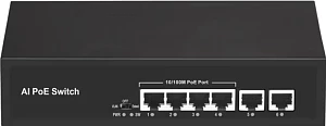Описание: iFlow F-SW-EU206MPOE-V/L - Неуправляемый PoE-коммутаторL2, 4 порта 10/100M RJ45 PoE, 2 uplink порт 10/100M RJ45, 802.3af/at, бюджет PoE 35 Вт, поддержка режима передачи до 300 м (10 Мбит/с, CAT6), VIP-порт, защита от перенапряжения 2 кВ, металл, настольный/настенный монтаж