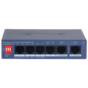 Описание: Dahua DH-CS4006-4GT - 6-портовый коммутатор с функцией облачного управления Порты: 4 RJ45 10/100Мбит/с, 2 RJ45 10/100/1000Мбит/с (uplink); питание: 12В(DC)