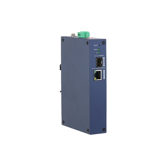 Dahua DH-CHS4102-1GT - 2-портовый коммутатор с функцией облачного управления Порты: 1 RJ45 10/100/1000Мбит/с, 1 SFP 1000Мбит/с (uplink); питание: 48~57В(DC); грозозащита: до 6кВ; рабочая температура: -30°С~+65°С; IP30, IK06; монтаж на DIN-рейку