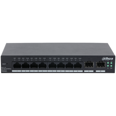 Dahua DH-CS4210-8GT - 10-портовый коммутатор с функцией облачного управления Порты: 8 RJ45 10/100/1000Мбит/с, 2 SFP 1000Мбит/с (uplink); питание: 12В(DC)