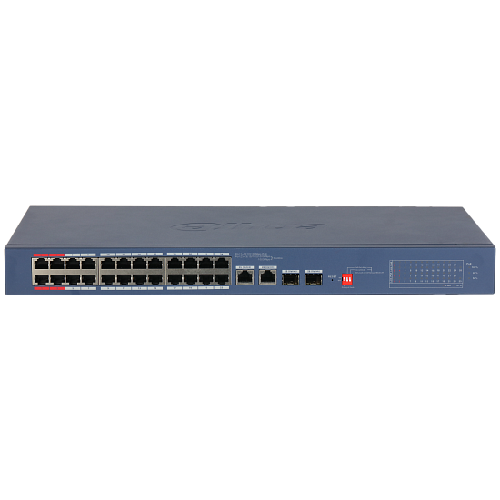 Dahua DH-CS4226-24ET-240-V2 - 24-портовый PoE коммутатор с функцией облачного управления Порты: 24 RJ45 10/100Мбит/с (PoE/PoE+/Hi-PoE/IEEE 802.3bt), 2 комбинированных SFP/RJ45 10/100/1000Мбит/с (uplink); мощность PoE: порты 1~4 до 90Вт, порты 5~24...