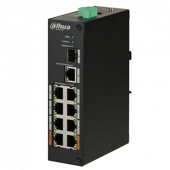 Dahua DH-PFS3110-8ET-96 - Защищенный 8-портовый РОЕ коммутатор, неуправляемый; 1*1000 Base-X 1*10/100/1000 Base-T 8*10/100 Base-T (PoE порты) Мощность PoE портов: 1-2 ≤60Вт, порты: 3-8≤30Вт, Всего: ≤96Вт; IEEE802.3af/IEEE802.3at/Hi-PoE; Бюджет РОЕ: 96 Вт Питание :DC 48~57В; Молниезащита - до 6 кВ, электростатическая защита - 15 кВ (воздушный разряд), 8 кВ (контактный). Размеры: 150×100×42 мм; Монтаж на DIN-рейку Рабочие температуры: от -30⁰С до +65⁰С