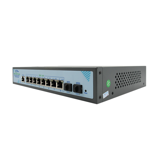 Space Technology ST-S308POE(8G/2S/1C/120W/A) PRO M - Источник питания, преобразователи статические предназначены для обеспечения проводных сетей напряжением 48 Вольт, PoE порты: 8 х (10/100/1000 Мбит/с), SFP порты: 2 х (10/100/1000 Мбит/с), Max.пропускная сп-ть: 1000 Мбит/канал, Р(ном) каждый порт (Вт): 15 Вт, Р(макс) каждый порт (Вт): 30 Вт, Тип РоЕ: A, AI QoS, AI VLAN, Грозозащита