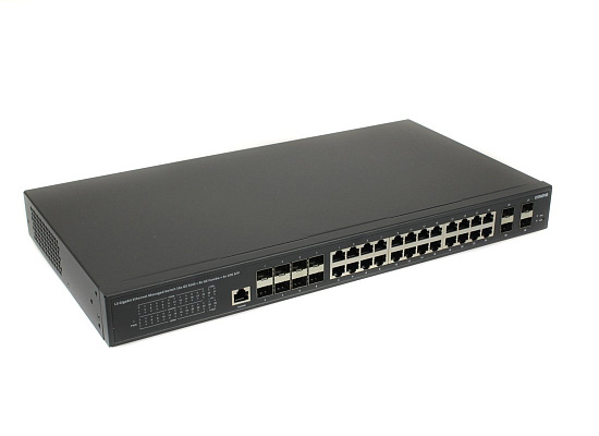 Управляемые (L3) коммутаторы с 10G портами SW-32G4X-2L и SW-32G4X-3L на 28 портов (8GE Combo + 16xGE RJ-45 + Uplink 4х10G «SFP+») предназначены для объединения сетевых устройств и передачи данных между ними.